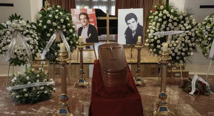 La sala donde se rinde homenaje a Manuel de la Calva, quien formaba parte del Dúo Dinámico y falleció ayer en Madrid, permanecerá abierta durante todo el día en el palacio de Longoria, sede de la SGAE. El velorio comenzó a recibir visitantes a las 11 de la mañana y estará disponible hasta las 8 de la tarde para que todos puedan rendir homenaje al coautor de canciones como ‘Resistiré’ y ‘Quince años tiene mi amor’. Este artista falleció a los 88 años en el Hospital Anderson de Madrid. La primera en llegar fue su esposa, acompañada de sus hijos y poco después llegó Ramón Arcusa, su colega del Dúo Dinámico. Dentro del ataúd se encuentran retratos del músico, rodeados de coronas de flores enviadas por familiares y amigos. Se espera que el ministro de Cultura, Ernest Urtasun, llegue a la capilla ardiente alrededor de la 1:00 de la tarde. Sus admiradores han comentado la gratitud que sienten hacia el coautor de canciones como ‘Resistiré’ y ‘Quince años tiene mi amor’. Maribel, quien llegó desde Valencia, recordaba los kilómetros que ha recorrido con sus padres para ir a sus conciertos.