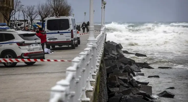 The Goretti storm has resulted in the death of a man who fell into the sea in San Sebastián, which is under orange alert due to dangerous maritime conditions. At 11:10 this morning, firefighters were informed that someone had fallen into the sea near the Kursaal, and rescue teams found the body in the area of the Paseo de Salamanca. The victim is an elderly man. The search began at the Zurriola breakwater, on the opposite bank of the river. This area is closed to pedestrian traffic, as are the coastal areas of the Donostia capital, due to the bad weather. The storm has caused winds exceeding 100 kilometres per hour in various areas of Galicia and the Basque Country. The State Meteorological Agency has issued a warning for the risk of avalanches in the Picos de Europa.